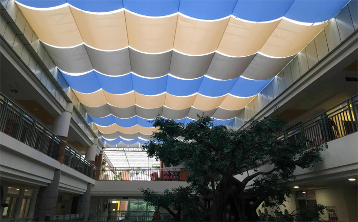 佛山順德大良濤匯廣場采光頂電動遮陽棚 天棚簾實拍